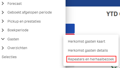 Onder het hoofdmenu Gasten staat nu het werkblad ‘Repeaters en herhaalbezoek’.