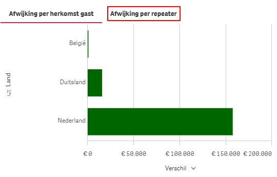 De grafiek ‘Afwijking per herkomst gast’ was al beschikbaar. Daar is ‘Afwijking per repeater’ aan toegevoegd. Boven de grafiek kies je via de tab de gewenste weergave. Zo wissel je tussen herkomst-analyse en repeater-analyse zonder je ingestelde filters te wijzigen.
