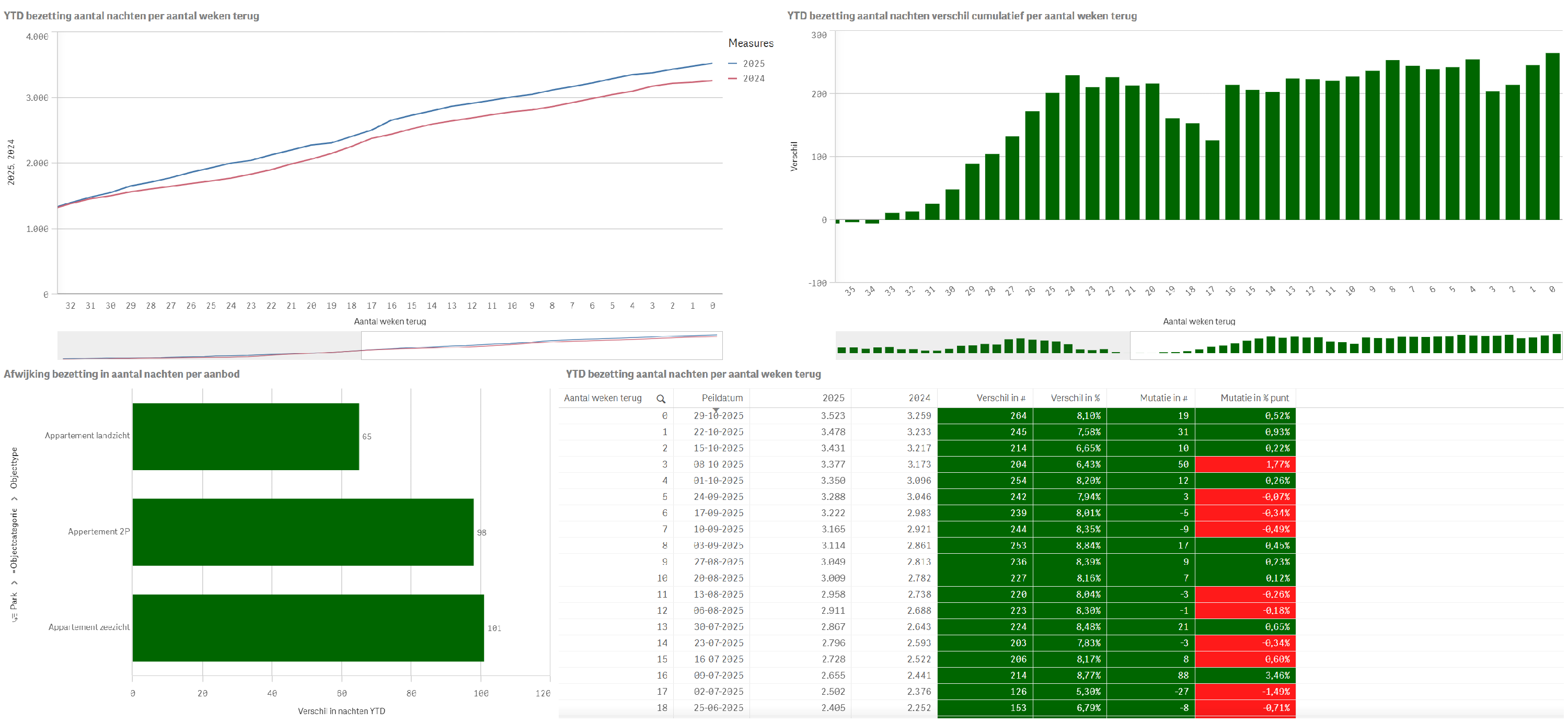 - Gebruik: YTD‑trend is geschikt voor jaar/langere verblijfsperiode analyse. Pickup voor specifieke verblijfsperioden en korte‑termijn sturing.
