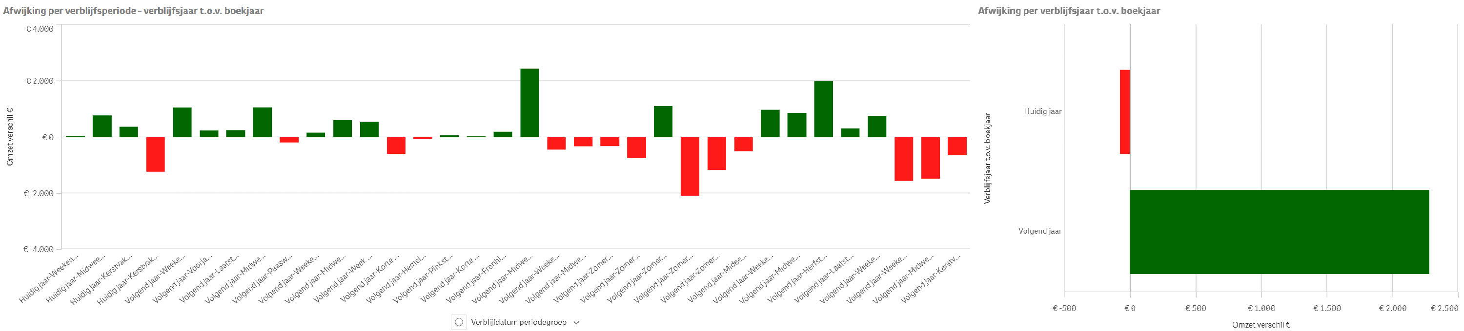 - Verblijfsperiode-grafieken: onthoud dat labels “Vorig jaar”, “Huidig jaar” en “Volgend jaar” verwijzen naar verblijfsjaar, niet naar boekingsjaar.